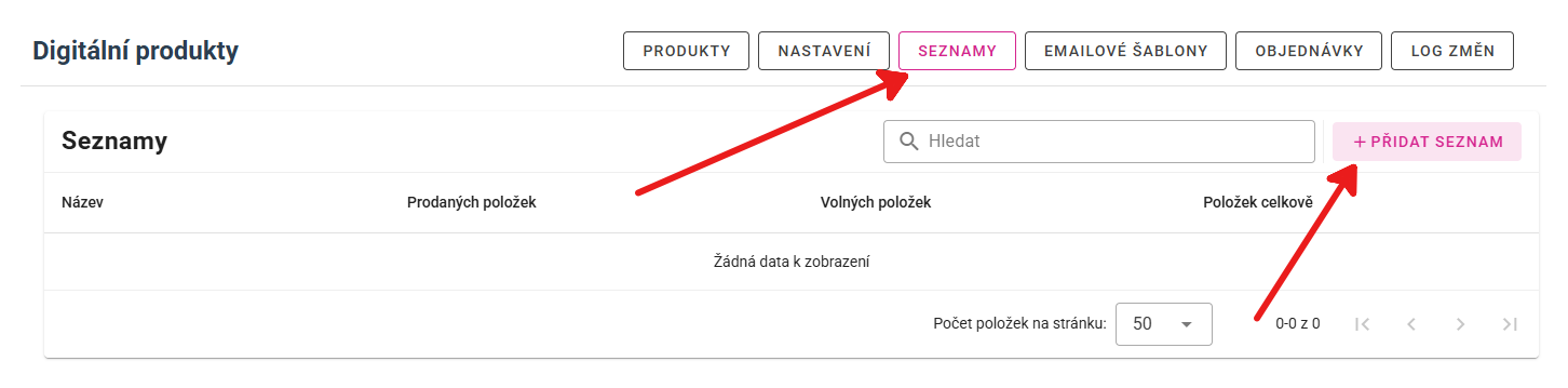 - Az app.brani.cz oldalon lépjen a Digitális termékek (Digitális termékek) szakaszra.